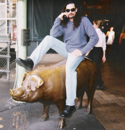 Tony on the Pike Place Market pig in Seattle - Tony at a restaurant - Tony after a bike wipeout